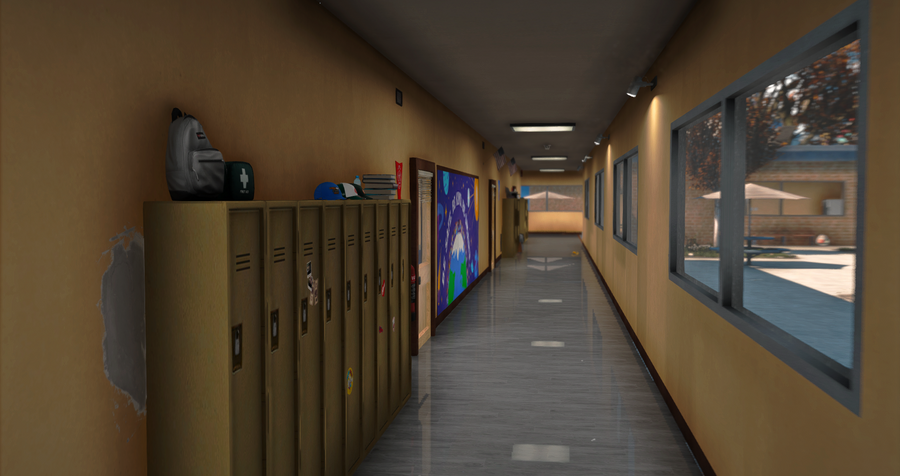 - Main section containing 3 classrooms etc...